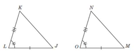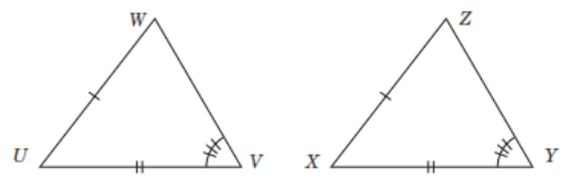 In each pair of triangles, congruent parts are indicated by line markings. Determine whether or not each pair of triangles is congruent. If the triangles are congruent, identify the postulate that proves such congruence. Choose your answer.